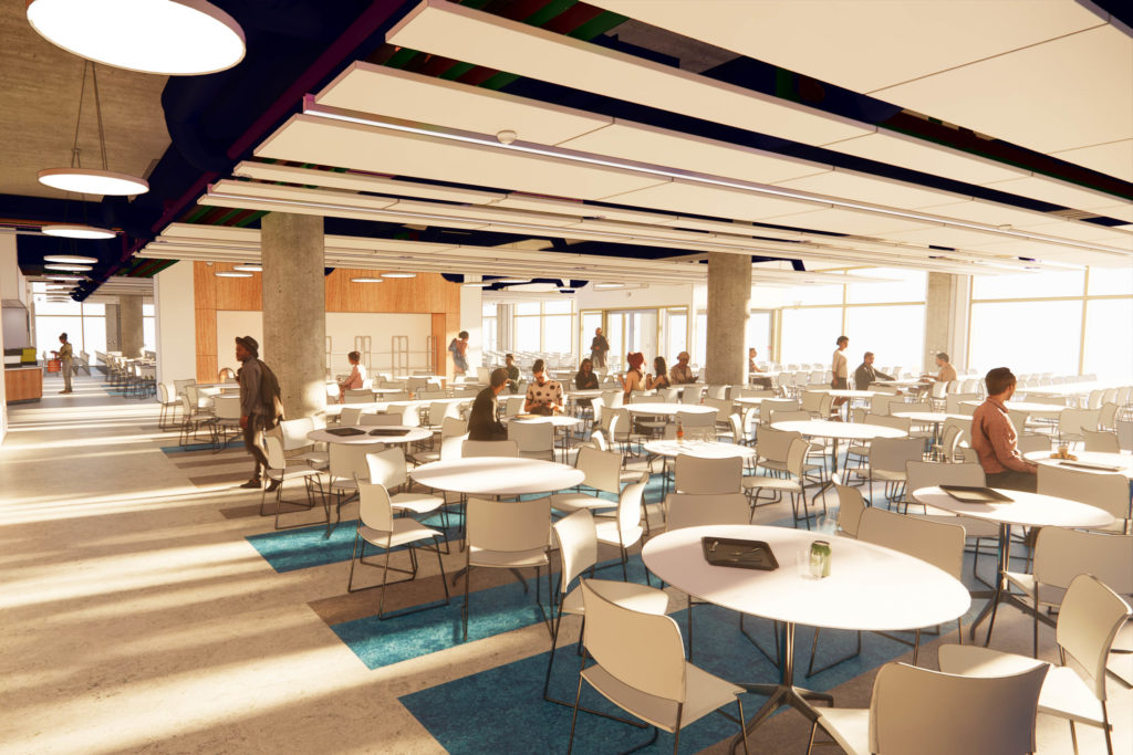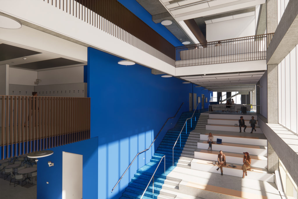 The development comprises 19 cutting-edge digital design studios, advanced computer laboratories, seminar rooms, and a 600-seat restaurant, all of which are designed to foster creativity and interdisciplinary learning. Green design features are integral to the project, including photovoltaic panels integrated at roof level, contributing to the building’s 78.7% Excellent BREEAM rating. This certification highlights the building’s exceptional environmental performance, energy efficiency, and reduced carbon impact.
